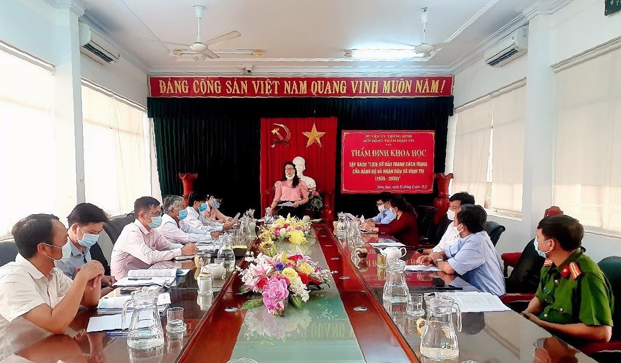 Kết luận tại buổi thẩm định, đồng chí Võ Thị Đoan Trang - UVBTV Huyện ủy, Trưởng Ban Tuyên giáo Huyện ủy đã đánh giá cao vai trò lãnh đạo, chỉ đạo và nỗ lực của cơ quan chủ trì biên soạn; Bản thảo được biên soạn khá công phu, nguồn tư liệu phong phú, đáp ứng yêu cầu của một công trình lịch sử đảng bộ địa phương. Đồng thời, đồng chí đề nghị cơ quan chủ trì biên soạn nghiêm túc tiếp thu toàn bộ nội dung góp ý của các thành viên HĐTĐ, tiếp tục sưu tầm tư liệu, bổ sung làm rõ thêm một số nội dung, đặc biệt là các nội dung liên quan đến các vấn đề về sự kiện, con người cụ thể mà Báo cáo tổng hợp nội dung góp ý của thành viên HĐTĐ đã chỉ ra. Cơ quan chủ trì phải chịu trách nhiệm về nội dung sự kiện, nhân vật, địa danh, số liệu trích dẫn trong toàn bộ công trình. Hội đồng thống nhất kết luận: Bản thảo “Lịch sử đấu tranh cách mạng của Đảng bộ và Nhân dân xã Bình Trị (1930 - 2020)” có thể lập thủ tục đề nghị xuất bản sau khi sửa chữa, hoàn thiện các nội dung theo yêu cầu./.