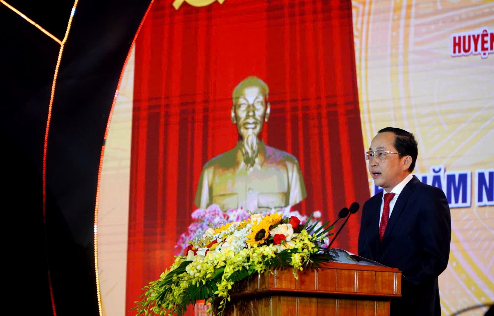 Đ/c Nguyễn Văn Lượm - Bí thư Huyện ủy đọc diễn văn tại Lễ kỷ niệm 50 năm Ngày giải phóng Thăng Bình (26/3/1975 - 26/3/2025).