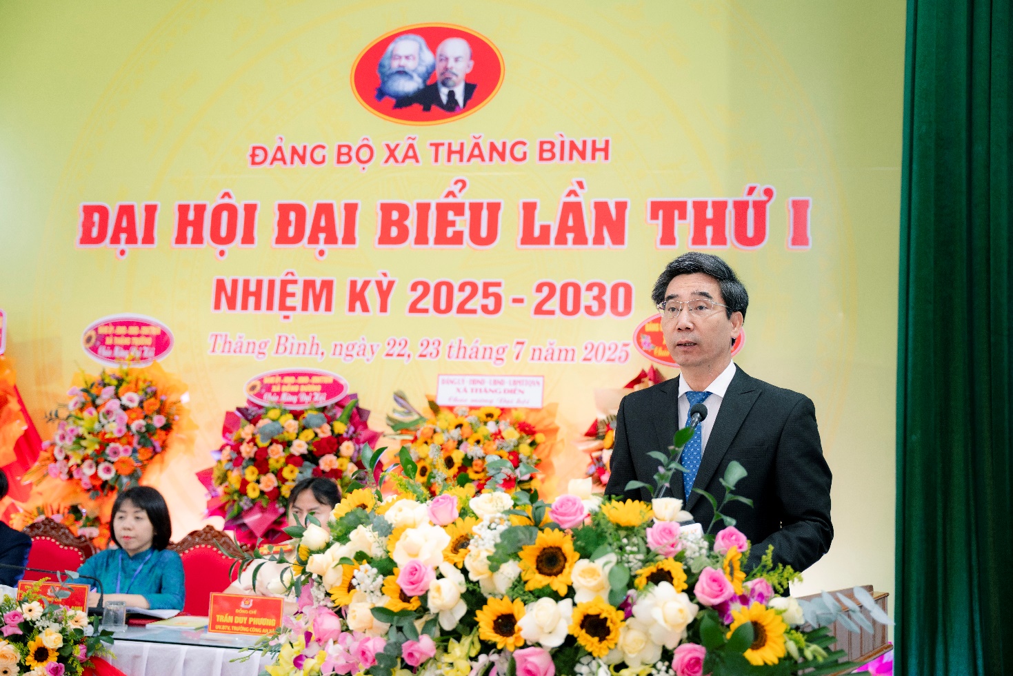 Hôm nay, trong không khí phấn khởi trang trọng, dân chủ và đổi mới, tôi rất vui mừng và vinh dự được thay mặt Thành ủy Đà Nẵng về tham dự và chỉ đạo Đại hội Đại biểu Đảng bộ xã Thăng Bình lần thứ I, nhiệm kỳ 2025-2030. Đây là một sự kiện chính trị mang ý nghĩa lịch sử, không chỉ là Đại hội đầu tiên của một Đảng bộ mới thành lập mà còn đánh dấu một bước chuyển mình quan trọng, khẳng định vị thế mới của xã Thăng Bình trong tổng thể phát triển của thành phố Đà Nẵng bước vào kỷ nguyên mới, kỷ nguyên vươn mình của đất nước.