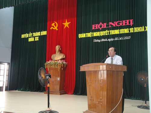 Phát biểu khai mạc hội nghị, đ/c Phan Nghĩa- TUV, Bí thư Huyện ủy nhấn mạnh: Nghị quyết Hội nghị lần thứ 10 BCH Trung ương Đảng (khóa XI) có ý nghĩa rất quan trọng, đặc biệt là công tác chuẩn bị Đại hội Đảng các cấp, tiến tới Đại hội toàn quốc lần thứ XII của Đảng. Đồng chí đề nghị các đại biểu tập trung nghiên cứu, tìm hiểu kỹ về nội dung của Nghị quyết TW 10 (khóa XI); đồng thời yêu cầu các địa phương, cơ quan, đơn vị trên địa bàn huyện nghiêm túc quán triệt, triển khai thực hiện Nghị quyết; tổ chức tổng hợp, tiếp thu ý kiến tại Đại hội Đảng bộ các cấp để hoàn thiện trước khi trình Đại hội Đảng cấp trên, nâng cao chất lượng góp ý các dự thảo văn kiện Đại hội XII của Đảng.