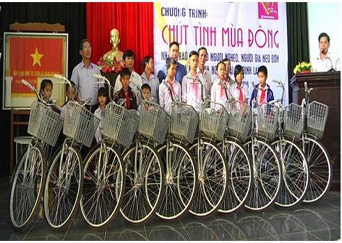 Ảnh: Tặng xe đạp cho các em học sinh.
