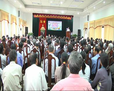 Tại buổi gặp mặt, đồng chí Hồng Quốc Cường – Phó Bí thư, Chủ tịch UBND huyện đã báo cáo một số tình hình kinh tế xã hội, an ninh trật tự trên địa bàn huyện trong năm 2015. Theo báo cáo, năm 2015, tổng giá trị sản xuất ngành kinh tế đạt hơn 6.400 tỷ đồng. Tốc độ tăng trưởng đạt 14,6%. Cơ cấu giữa các ngành Nông nghiệp, Công nghiệp, Xây dựng - Thương mại và Dịch vụ tương ứng là 26% - 30,5% - 43,5%. Thu nhập bình quân đầu người đạt 22,05 triệu đồng/năm, tăng 5,03 triệu đồng/năm/người so với năm 2014. Trong đó, giá trị sản xuất ngành nông nghiệp đạt 1.600 tỷ đồng, đạt 88,7%. Chương trình mục tiêu quốc gia xây dựng nông thôn mới được quan tâm, có 05 xã đạt chuẩn xã nông thôn mới, đạt 100% kế hoạch. Về giá trị sản xuất công nghiệp - xây dựng ước đạt 2.040 tỷ đồng, tăng 2,1% so với kế hoạch; hiện có 9 doanh nghiệp vào đầu tư hoạt động có hiệu quả tại các cụm công nghiệp, giải quyết việc làm cho 2.990 lao động. Về giá trị Thương mại – Dịch vụ đạt 2.779 tỷ đồng, tăng 54% so với kế hoạch. Công tác thu chi ngân sách được đảm bảo, tổng thu ngân sách cả năm đạt hơn 897 tỷ đồng, đạt hơn 120% kế hoạch năm, tăng gần 25% so với năm 2014; Tổng chi ngân sách ước cả năm hơn 855 tỷ đồng, đạt hơn 120% kế hoạch năm, tăng gần 25% so với năm 2014. Văn hóa - xã hội từng bước được nâng lên, tỷ lệ học sinh được công nhận tốt nghiệp THCS đạt 99,22%; tỷ lệ học sinh tốt nghiệp THPT đạt 87%. Tỉnh đã kiểm tra và công nhận 6 trường đạt chuẩn quốc gia, có 5/74 trường được kiểm định và công nhận đạt chất lượng giáo dục cấp độ 2 và 3. Công tác phổ cập giáo dục tiểu học đúng độ tuổi và phổ cập trung học cơ sở được duy trì. Quốc phòng an ninh và trật tự an toàn xã hội được đảm bảo, triển khai thực hiện tốt công tác quốc phòng quân sự địa phương; hoàn thành 100% chỉ tiêu giao quân năm 2015. Xây dựng lực lượng dân quân tự vệ đạt 100% chỉ tiêu. Phát hiện, điều tra làm rõ 76/89 vụ vi phạm pháp luật.