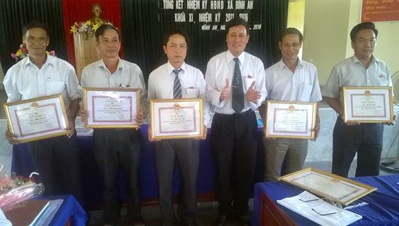 Cũng dịp này HĐND xã Bình An đã khen thưởng cho 1 tập thể và 6 cá nhân có thành tích xuất sắc trong nhiệm kỳ qua.