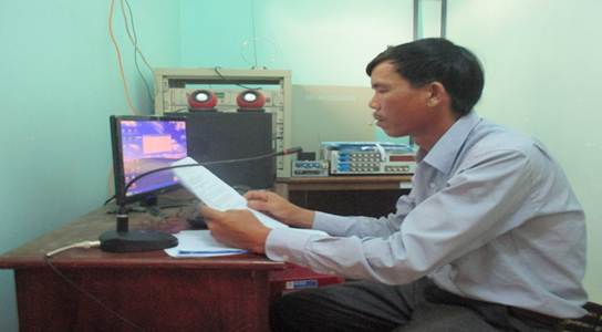 Anh Nguyễn Văn Mười - phát thanh viên đang trực tiếp đọc