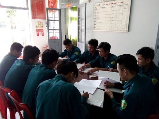 Tiểu đội Dân quân thường trực (DQTT) Thị trấn Hà Lam được thành lập năm 2009, có nhiệm vụ trực sẵn sàng chiến đấu, phối hợp với các ban, ngành chức năng trong công tác đảm bảo an ninh chính trị, trật tự an toàn xã hội tại địa phương. Các cán bộ, chiến sĩ Tiểu đội DQTT Thị trấn, đều là những người có phẩm chất đạo đức tốt, lập trường tư tưởng vững vàng, hiểu biết pháp luật, ý thức tổ chức kỷ luật nghiêm và đủ khả năng hoàn thành tốt chức trách, nhiệm vụ được giao. Điều khá ấn tượng với chúng tôi, là nơi làm việc của Tiểu đội DQTT Thị trấn được xây dựng khang trang, có phòng giao ban, phòng làm việc, nhà nghỉ, nhà bếp, nhà vệ sinh... rất nền nếp. Cách tổ chức ăn ở, sinh hoạt, học tập, công tác của anh em trong Tiểu đội chẳng khác nào một đơn vị chính quy. Tiểu đội trưởng Võ Tấn Hạnh cho biết: Với những anh em DQTT, nhiệm vụ trực sẵn sàng chiến đấu luôn đặt lên hàng đầu. Bất kể ngày, đêm, nắng, mưa, hễ trên địa bàn xảy ra sự cố là anh em chúng tôi lại có mặt. Trong công tác huấn luyện, sẵn sàng chiến đấu, đơn vị luôn thực hiện, vận dụng tốt phương châm, phương án “Cơ bản, thiết thực, chất lượng” phù hợp với tính chất, yêu cầu của lực lượng DQTT, bảo đảm thời gian và quân số, huấn luyện đến đâu chắc đến đó, đúng nội dung, đúng chương trình theo quy định của Bộ Quốc phòng”. Bên cạnh đó, cán bộ chiến sĩ Tiểu đội DQTT thường xuyên tham gia các buổi tập huấn, huấn luyện do Ban CHQS huyện tổ chức, để nâng cao trình độ, nhận thức, năng lực quản lý, chỉ huy và tổ chức duy trì luyện tập cho Tiểu đội. “ Hàng tuần, tiểu đội chúng tôi luôn tổ chức từ 2 đến 3 buổi học tập chính trị, qua đó, giúp cho anh em trong đơn vị kịp thời nắm bắt những chủ trương của Đảng, Nhà nước, đặc biệt là của địa phương để xây dựng kế hoạch hoạt động và triển khai thực hiện.”- Tiểu đội trưởng Võ Tấn Hạnh cho biết thêm.