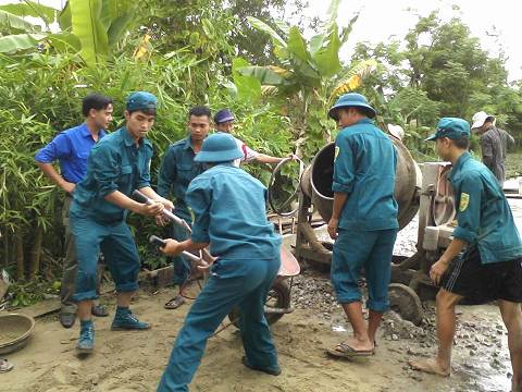 Ảnh: Giúp dân xây dựng bê tông giao thông nông thôn tại tổ 10 Thị trấn Hà Lam