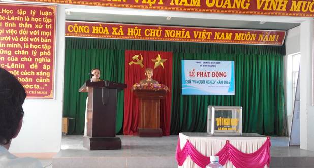 Ảnh: Đ/c Đinh Thị Ngân – Chủ tịch UBMTTQ VN xã báo cáo kết quả vận động quỹ vì người nghèo năm 2015 và phát động năm 2016