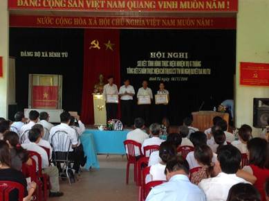 Cũng tại hội nghị, Đảng bộ đã tổng kết 05 năm thực hiện Chỉ thị 03-CT/TW của Bộ chính trị về tiếp tục đẩy mạnh việc học tập và làm theo tấm gương đạo đức Hồ Chí Minh. Với sự chuyển biến từ nhận thức đến hành động trong 05 năm triển khai trong cán bộ, đảng viên và nhân dân, Đảng uỷ đã khen thưởng 03 tập thể, 02 cá nhân có thành tích xuất sắc trong học tập và làm theo gương Bác.