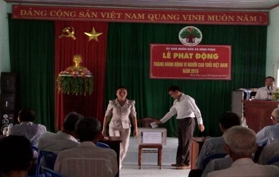 Tại lễ phát động, các đại biểu đã lần lượt hưởng ứng đóng góp với tổng số tiền thu được hơn 13 triệu đồng. Cũng trong buổi lễ này, UBND xã đã trao tặng 24 suất quà dành cho người cao tuổi cô đơn không nơi nương tựa trên địa bàn xã Bình Phục.