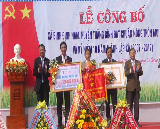 Cách đây 10 năm, ngày 8.3.2007, thực hiện Nghị định số 33/2007/NĐ-CP về việc điều chỉnh địa giới hành chính xã, thị trấn, xã Bình Định Nam chính thức được thành lập và đi vào hoạt động. Nhìn lại chặng đường 10 năm, Đảng bộ, chính quyền và người dân xã Bình Định Nam đã khắc phục mọi khó khăn, phát huy tốt tiềm năng lợi thế để đầu tư xây dựng quê hương. Hiện nay, kinh tế có bước phát triển khá, kết cấu hạ tầng được quan tâm, trong đó đường trục xã, liên xã đã bê tông hóa đạt 100%, giao thông nội đồng gần 80%. Trên lĩnh vực văn hóa- xã hội có nhiều chuyển biến tích cực. Phong trào toàn dân đoàn kết xây dựng đời sống văn hóa lồng ghép với các phong trào, cuộc vận động khác được phát động sâu rộng. Các chính sách an sinh xã hội, đền ơn đáp nghĩa được quan tâm, cơ sở vật chất và chất lượng y tế từng bước được cải thiện. Thu nhập bình quân đầu người toàn xã đạt trên 27 triệu đồng/người/năm. Tỷ lệ hộ nghèo hiện chỉ còn 3,4%. Đối với chương trình mục tiêu quốc gia xây dựng nông thôn mới, từ 1 xã chỉ đạt 1 tiêu chí nông thôn mới vào năm 2013, đến cuối năm 2016, xã đã được UBND tỉnh công nhận đạt chuẩn nông thôn mới. Dịp này, UBND tỉnh Quảng Nam đã trao quyết định công nhận xã Bình Định Nam đạt chuẩn nông thôn mới năm 2016, UBND huyện Thăng Bình trao tặng công trình phúc lợi trị giá 300 triệu đồng.