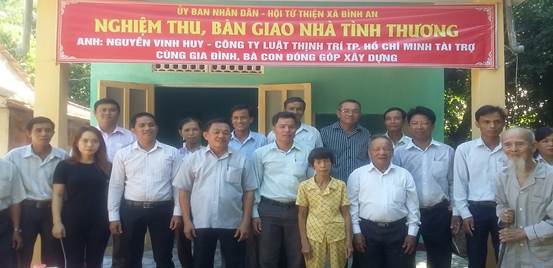 Được biết kinh phí do nhà tài trợ Nguyễn Vinh Huy – Công ty Luật Thịnh Trí TPHCM tài trợ 30 triệu đồng và bà con gia đình đóng góp hỗ trợ. Căn nhà được xây dựng với 3 phòng, diện tích 31 m2. Nhân dịp này các nhà hảo tâm, mạnh thường quân trong xã đã hỗ trợ bếp ga, nồi cơm điện, vật dụng gia đình cho hộ bà.