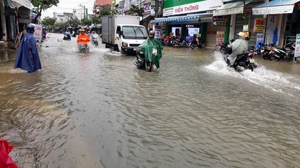 Nhiều tuyến đường ở Thị trấn Hà Lam bị ngập lên 0,5m