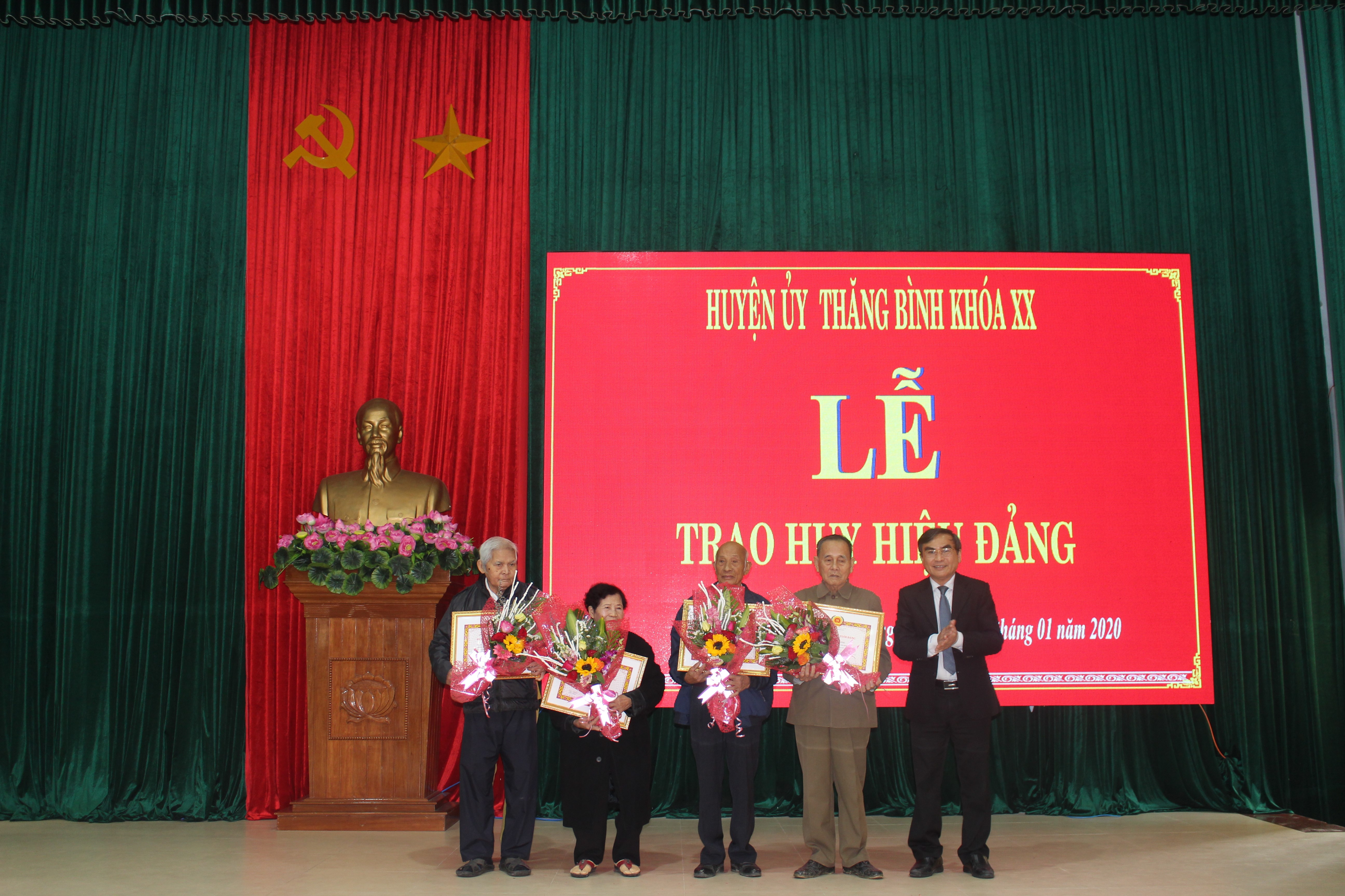 Sáng ngày 14/01/2020, Huyện ủy Thăng Bình đã tổ chức Lễ trao tặng Huy hiệu 60 năm tuổi Đảng trở lên cho đảng viên trong Đảng bộ. Theo đó, Huyện ủy trao Huy hiệu 65 năm tuổi Đảng cho Đảng viên Ngô Đức Thặng - sinh hoạt tại Đảng bộ thị trấn Hà Lam, trao Huy hiệu 60 năm tuổi Đảng cho đảng viên Hà Văn Lưu - sinh hoạt tại Đảng bộ xã Bình Lãnh, đảng viên Nguyễn Nghê - sinh hoạt tại Đảng bộ xã Bình Định Bắc và đảng viên Nguyễn Thị Diệm - sinh hoạt tại Đảng bộ thị trấn Hà Lam. Thay mặt Ban Thường vụ Huyện ủy, đồng chí Phan Công Vỹ - Bí thư Huyện ủy đã trao Huy hiệu, tặng hoa và chúc mừng 2 đảng viên đã vinh dự được đón nhận Huy hiệu cao quý của Đảng.