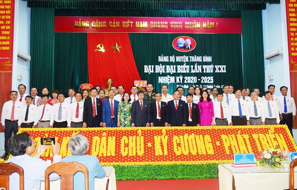 Đại hội đã bầu Ban Chấp hành Đảng bộ huyện Thăng Bình khóa XXI gồm 43 đồng chí. Tại hội nghị lần thứ nhất, Ban Chấp hành khóa mới đã bầu Ban Thường vụ Huyện ủy khóa XXI gồm 14 đồng chí; đồng chí Phan Công Vỹ tái đắc cử chức danh Bí thư Huyện ủy khóa XXI; các đồng chí Lê Quang Hạt, Trần Thị Kim Hoa, Võ Văn Hùng được bầu giữ chức danh Phó Bí thư Huyện ủy khóa XXI.