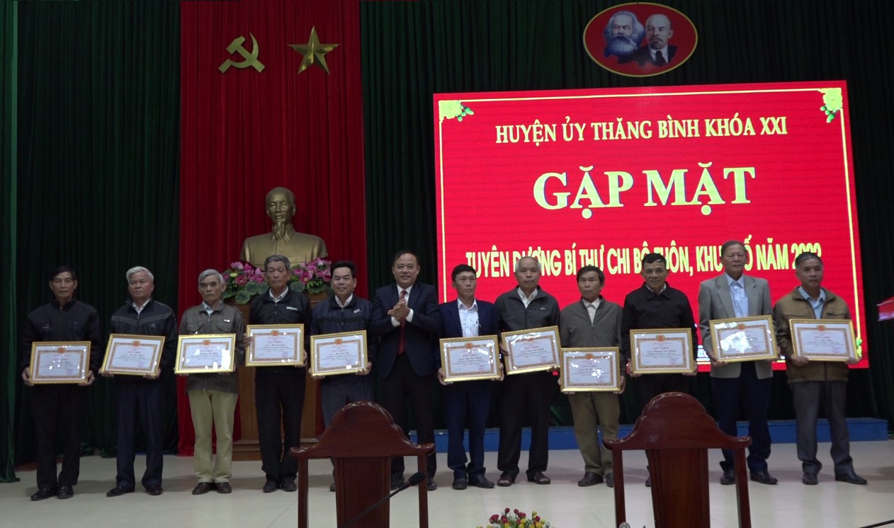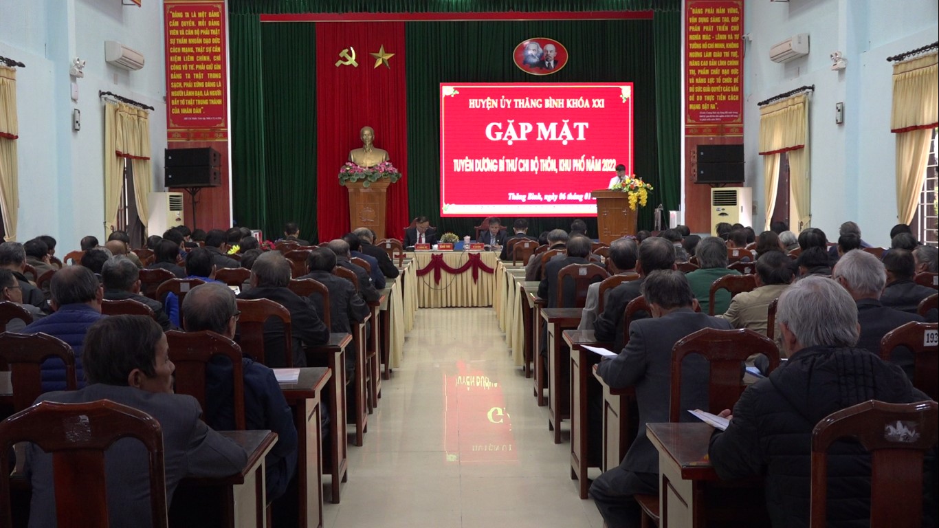 Tại buổi gặp mặt, lãnh đạo huyện Thăng Bình đánh giá những thành quả trên có sự đóng tích cực từ các đồng chí bí thư chi bộ thôn, khu phố đã góp phần vào sự phát triển chung của huyện nhà. Các đồng chí đã bám sát chỉ đạo của Đảng ủy xã, thị trấn, đã tập trung chỉ đạo triển khai, tổ chức thực hiện, hoàn thành tốt các nhiệm vụ chính trị của từng địa bàn khu dân cư; tiếp tục nâng cao năng lực lãnh đạo, sức chiến đấu của tổ chức đảng và chất lượng đội ngũ cán bộ, đảng viên. Dịp này, Huyện ủy Thăng Bình đã tuyên dương, khen thưởng cho 23 bí thư chi bộ thôn, khu phố có thành tích tốt trong phong trào thi đua yêu nước năm 2022.