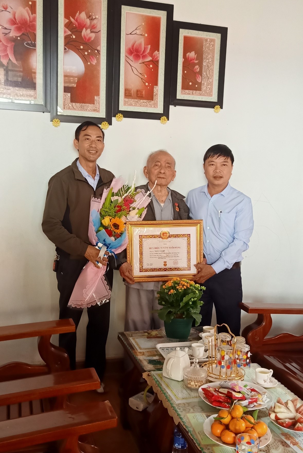 Trước đó, vào ngày 31/01/2023, đồng chí Võ Tấn Thuận - UVBTV, Trưởng Ban Tổ chức Huyện ủy đã trao tặng Huy hiệu 75 năm tuổi Đảng cho đồng chí Trần Văn Đô - Đảng viên chi bộ khu phố 1.