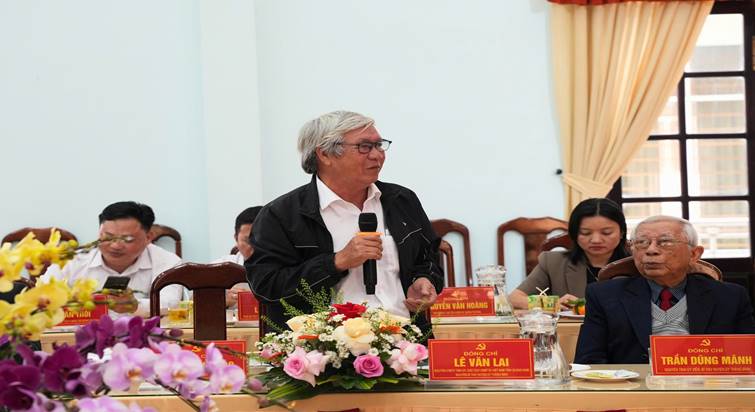 (Ảnh: đ/c Lê Văn Lai - Nguyên Uỷ viên Ban Thường vụ, Chủ tịch Uỷ ban MTTQ Việt Nam tỉnh Quảng Nam phát biểu tại buổi gặp mặt).