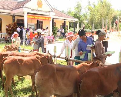 UBMT huyện chương trình trao bò giống sinh sản cho hộ nghèo