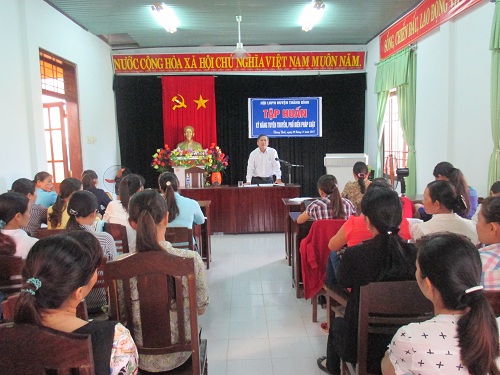 Đ/c Lê Đình Thành - Trưởng phòng Tư pháp huyện – người trực tiếp báo cáo cho lớp tập huấn đã triển khai một số luật liên quan đến quyền và lợi ích hợp pháp của phụ nữ và trẻ em như Luật Hôn nhân gia đình, Luật phòng chống bạo lực gia đình, Luật phòng chống mua bán người, Luật đất đai, Luật Nghĩa vụ quân sự,…qua đó đã giúp chị em hiểu rõ hơn một số luật để phục vụ tốt hơn cho công tác tuyên truyền, vận động nhân dân và hội viên phụ nữ trong thời gian tới.