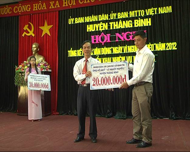 Chính sự chung tay, góp sức ấy, nên trong thời gian qua, nguồn Qũy Vì người nghèo của huyện Thăng Bình đã không được tăng lên theo từng năm. Cùng với đó, là hàng ngàn ngôi nhà Đại đoàn kết, hàng trăm con Bò giống sinh sản cùng nhiều phương tiện sinh kế cho người nghèo đã được UBMTTQVN, các tổ chức thành viên và các địa phương hỗ trợ xây dựng nên. Ông Võ Huấn, - Chủ tịch UBMTTQVN huyện Thăng Bình cho biết: “Trong thời gian qua, toàn huyện đã vận động gần 147 tỷ đồng, số tiền trên được dùng để sửa chữa hơn 3.000 ngôi nhà Đại đoàn kết, trợ cấp khó khăn cho hàng ngàn hộ dân, trao tặng 184 ngư lưới cụ cho ngư dân, hỗ trợ bò giống sinh sản cho hộ nghèo và trao học bổng cho hàng em học sinh hiếu học trên địa bàn, đây thực sự là những việc làm cụ thể, gần gũi với cuộc sống của đại đa số người nghèo, giúp họ có thêm động lực để vươn lên, ổn định cuộc sống”.