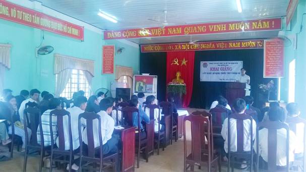 Về dự Khai giảng có Đ/c Nguyễn Văn Thận - UVBTV HND Tỉnh, Giám đốc Trung tâm dạy nghề và hỗ trợ nông dân Tỉnh Quảng Nam; Đ/c Lê Huy Trắc – PCT HND huyện Thăng Bình; Đ/c Lê Thị Hồng – chuyên viên PNN huyện Thăng Bình.