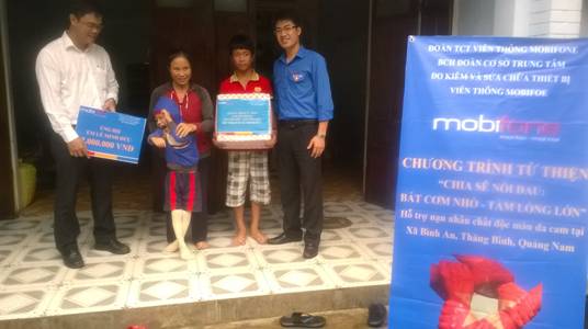 Với tinh thần tương thân tương ái nhằm chia sẻ một phần những khó khăn, thiệt thòi đối với những đối tượng có hoàn cảnh không may mắn trong xã hội. Đoàn đã thăm hỏi trao 6 phần quà cho 6 nạn nhân chất độc màu da cam cho các cháu Hồ Văn Tình ở tại thôn An Dưỡng, Võ Hùng Việt ở thôn An Thành 1, Phạm Thị Việt Trinh, Lê Minh Đức - ở thôn An Phước, Ngô thị Cẩm Tiên, Nguyễn Thị Vân Khánh ở Thôn An Mỹ, ngoài ra đoàn cũng đã hỗ trợ cho mỗi em 2.000.000 đồng tiền mặt. Đây là hoạt động ý nghĩa, thiết thực của BCH Đoàn cơ sở trung tâm đo kiểm và sửa chữa thiết bị viễn thông Mobifon Thành phố Đà Nẵng góp phần chung tay cùng xã hội xoa dịu nỗi đau da cam/dioxin. Chương trình thăm hỏi và tặng quà cho nạn nhân chất độc màu da cam/dioxin được BCH đoàn cơ sở trung tâm đo kiểm và sửa chữa thiết bị viễn thông Mobifone Thành phố Đà Nẵng đặc biệt quan tâm thể hiện đạo lý “nghĩa tình”, “lá lành đùm lá rách” quan tâm đến những người bất hạnh nhất trong những người bất hạnh, đồng thời động viên tinh thần cho các gia đình tiếp tục chăm sóc tốt giúp cho đối tượng xóa bỏ phần nào mặc cảm và vươn lên trong cuộc sống.