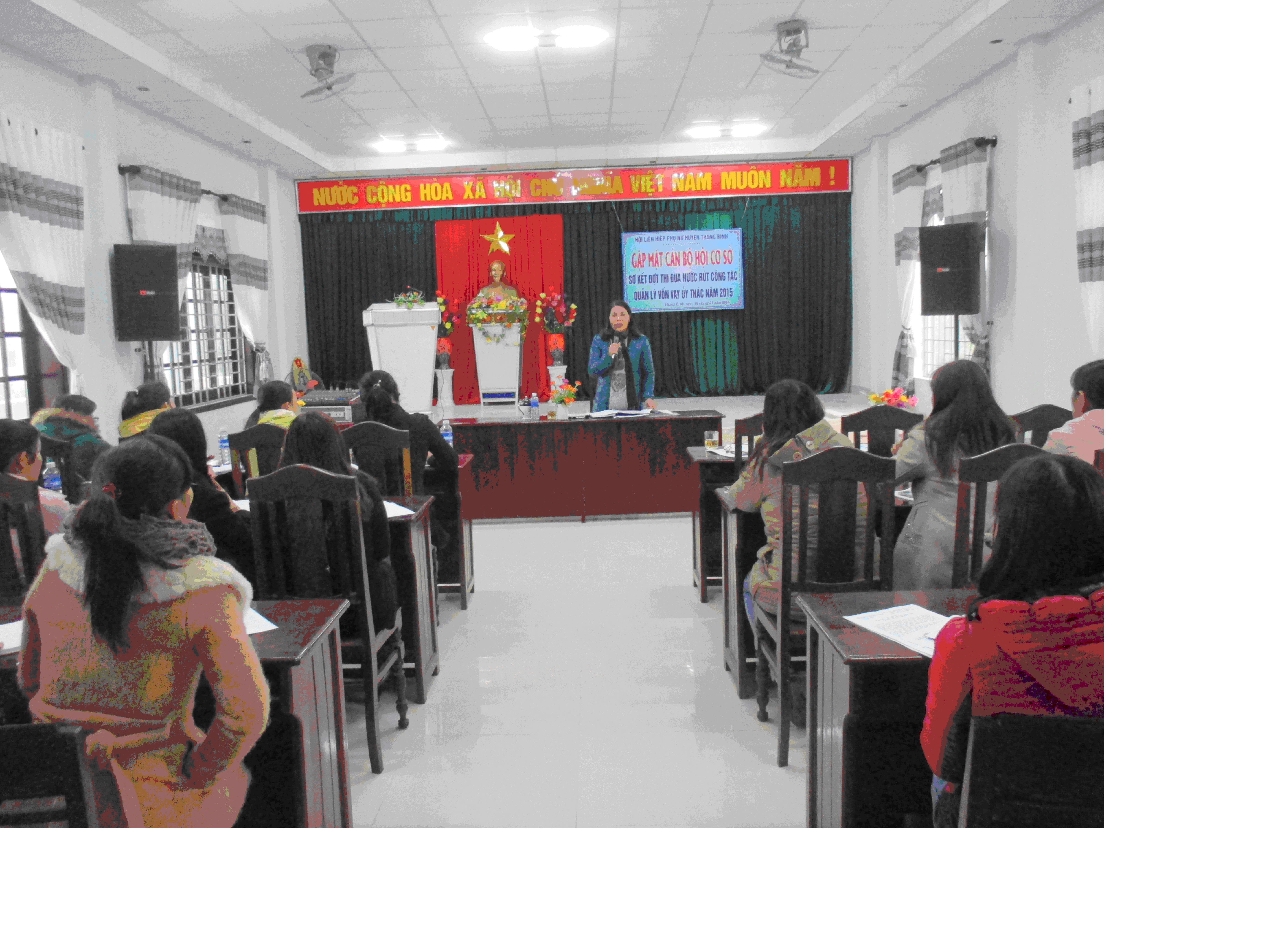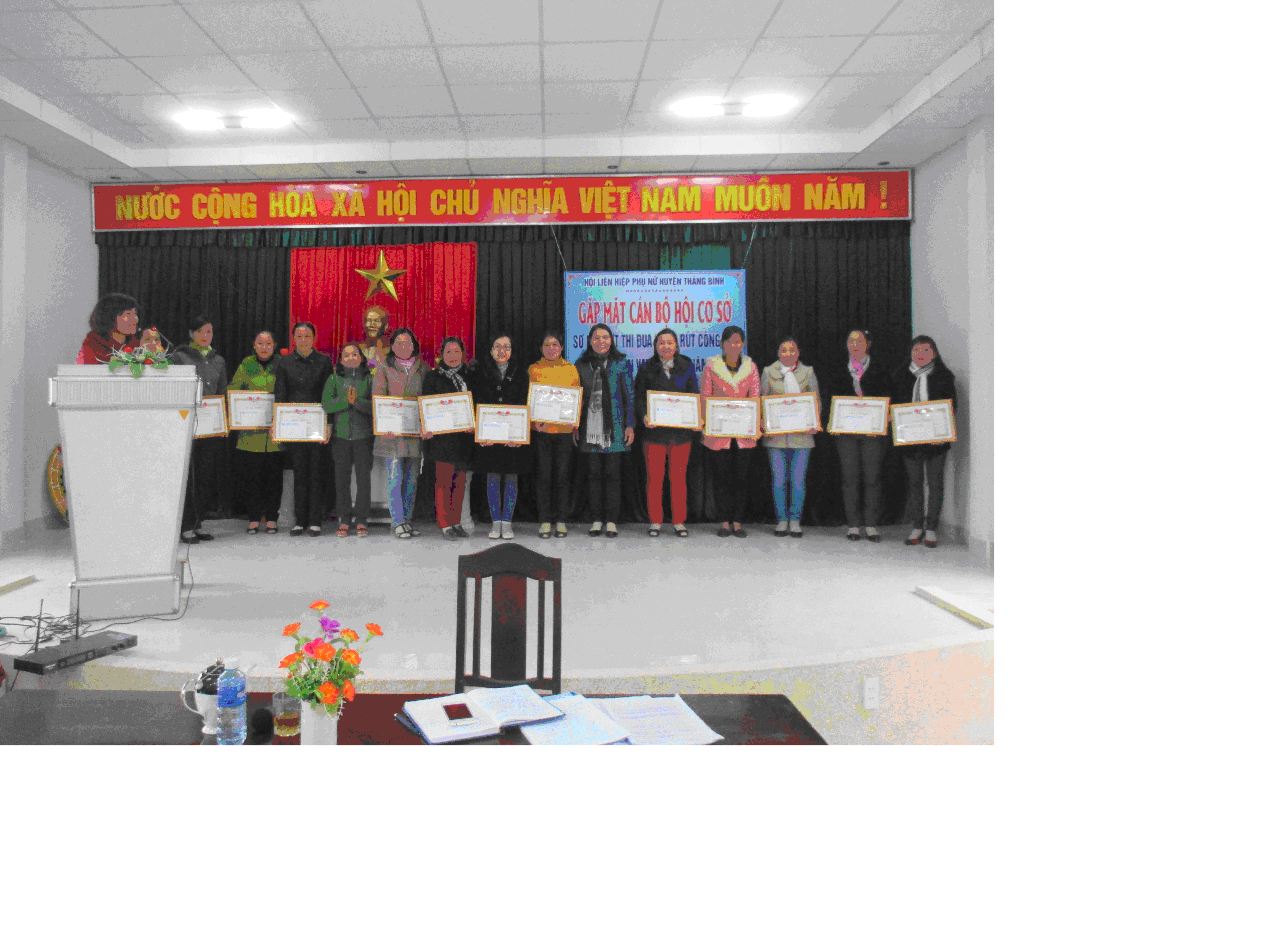 Dịp này, Hội LHPN huyện đã tặng 56 xuất quà cho 56 chị về dự gặp mặt, trị giá 11 triệu đồng. Cũng tại buổi gặp mặt Hội đã lồng ghép sơ kết đợt thi đua nước rút công tác quản lý vốn vay năm 2015. Qua đó đã khen thưởng cho 13 tập thể đã hoàn thành tốt đợt thi đua (mức thưởng 500.000 đồng cho 10 tập thể, 300.000 đồng cho 3 tập thể).