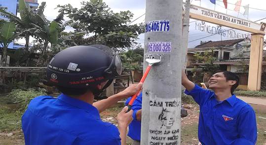 Ảnh: Xóa bảng quảng cáo sai quy định tại các tuyến đường trên địa bàn thôn An Thành 1