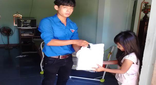 Ảnh: Đoàn xã Bình An trao quà cho các em khuyết tật