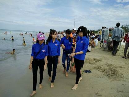 Tham gia thu gom rác thải làm sạch bãi biển