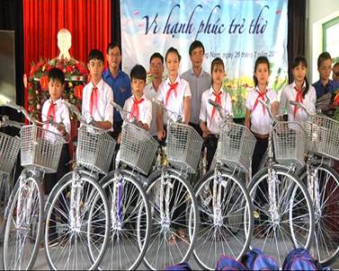 Chương trình đã trao 10 chiếc xe đạp và 160 phần quà gồm cặp sách, vở, một số dụng cụ phục vụ học tập cho các em học sinh có hoàn cảnh khó khăn, vươn lên học khá, giỏi ở năm học 2015 - 2016 tại các xã Bình Dương, Bình Triều, Bình Nguyên, Bình Giang. Tổng giá trị các phần quà gần 40 triệu đồng do Công ty Nam Trường Sơn tài trợ. Đây là những phần quà có ý nghĩa thiết thực nhằm giúp cho các em học sinh có hoàn cảnh khó khăn của huyện Thăng Bình có điều kiện học tập tốt hơn./.