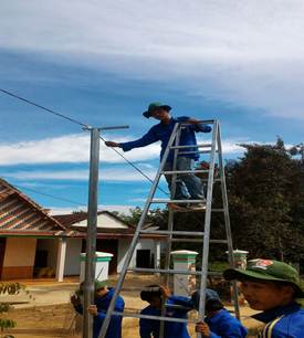 (Ảnh:Tuổi trẻ Thăng Bình tham gia bắt điện thắp sáng đường quê tại Hiệp Đức )