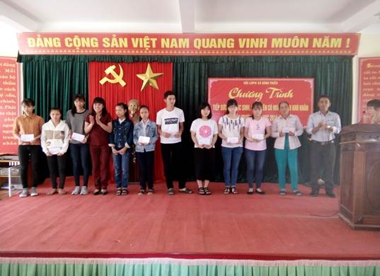 Hội LHPN xã đã vận động các tổ chức cá nhân, các doanh nghiệp, tôn giáo, người con quê hương đang sinh sống và làm việc trên khắp mọi miền đã hổ trợ cho 66 em học sinh, sinh viên (trong đó có 15 em sinh viên), mỗi suất là 1 ram vở và 500.000đ. Đây là một sự tiếp sức rất có ý nghĩa cho những học sinh, sinh viên nghèo, đúng vào lúc mà các em rất cần được sự hỗ trợ tài chính để thực hiện ước mơ đến trường. Mỗi em mỗi hoàn cảnh nhưng với tinh thần vượt khó, các em đã chăm chỉ học tập cho một ngày mai tươi sáng./.