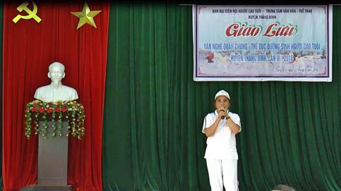 Theo đó, đối với phần giao lưu văn nghệ, các đơn vị đã tham gia các thể loại thơ, dân ca, hò, vè tự biên, tự diễn với chủ đề ca ngợi Đảng, Bác Hồ, mừng quê hương đổi mới, nông thôn mới gắn với bảo vệ môi trường. Về phần giao lưu thể dục dưỡng sinh, tất cả các đơn vị đồng diễn bài gậy ngắn. Cùng với đó, các đơn vị trình diễn bài thể dục dưỡng sinh tự chọn. Được biết hoạt động giao lưu văn nghệ- thể dục dưỡng sinh Người cao tuổi huyện Thăng Bình được tổ chức tại 3 cụm từ ngày 22.9 đến ngày 26.9.2016. Đây là hoạt động của Hội Người cao tuổi toàn huyện Thăng Bình tiến đến chào mừng kỷ niệm 26 năm Ngày Quốc tế Người cao tuổi (1.10.1991-1.10.2016).