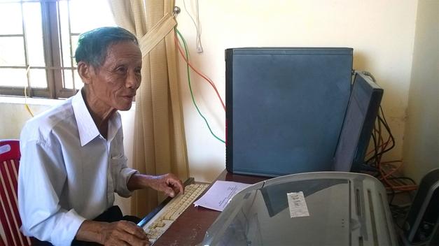 Ảnh: Mặc dù tuổi đã cao nhưng ông Huỳnh Nại vẫn minh mẫn và tiếp tục với công tác Hội.