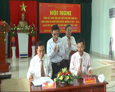 Đại diện HĐND và UBMTTQVN huyện ký kết quy chế phối hợp giai đoạn 2016-2021.