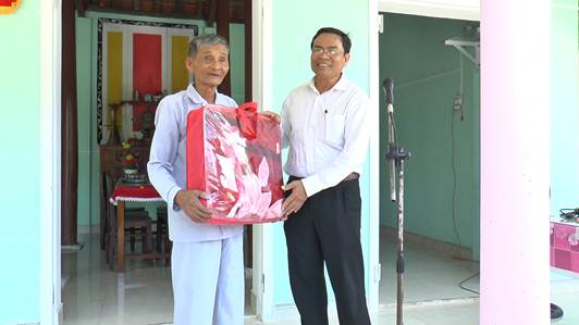 Đ/c Võ Huấn, Chủ tịch UBMTTQ Việt Nam huyện tặng quà cho ông Thái