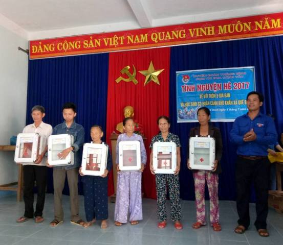 Đoàn tình nguyện đã tặng 47 tủ thuốc y tế cho các hộ dân có hoàn cảnh đặc biệt khó khăn