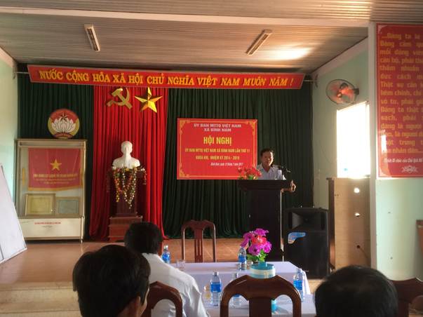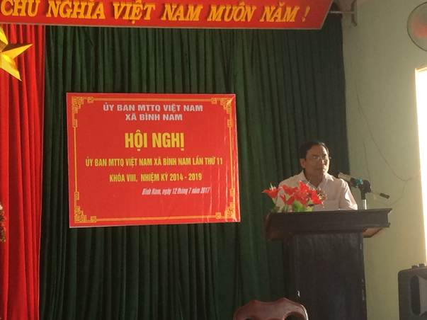 Đồng chí Võ Huấn-UVBTV Huyện ủy, CT UBMTTQVN huyện đã đánh giá cao những kết quả mà địa phương đã đạt được 6 tháng qua. Đồng thời yêu cầu địa phương cần quan tâm đến công tác vận động Nhân thực hiện xây dựng Nông thôn mới, từ nay đến cuối năm quyết tâm thực hiện được thêm 3 tiêu chí (tiêu chí số: 10 về thu nhập ;Tiêu chí số 13: hình thành các tổ sản xuất, và tiêu chí số 16: về văn hóa xã hội) và giữ vững 10 tiêu chí mà địa phương đã đạt được. Đặt biện quan tâm đến công tác xóa đói giảm nghèo bền vững.
