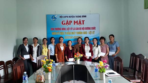 Qua buổi gặp mặt các chị đã chia sẽ tâm tư tình cảm, cũng như những khó khăn trong cuộc sống và công tác. Các chị cũng đã thể hiện quyết tâm vươn lên, cố gắng vượt qua mọi đau thương, mất mát do chiến tranh để lại, tiếp nối truyền thống của cha anh đi trước trong sự nghiệp xây dựng và bảo vệ tổ quốc, Phát huy truyền thống phụ nữ Việt Nam “Anh hùng, bất khuất, trung hậu, đảm đang”, thực hiện thắng lợi nhiệm vụ công tác Hội, góp phần đưa phong trào Hội của huyện nhà ngày càng phát triển vững mạnh. Tại buổi gặp mặt, Huyện Hội đã chia sẻ, động viên các chị vượt qua khó khăn khắc phục mọi khó khăn do chiến tranh để lại đặc biệt là những mất mát về tinh thần để vươn lên trong cuộc sống, thực hiện thắng lợi mọi nhiệm vụ được giao. Dịp này, Hội LHPN huyện đã tặng 11 suất quà, mỗi suất 200.000đ cho cán bộ đương chức là con thương binh, liệt sĩ. Ngoài ra, Hội LHPN huyện đã tổ chức đi thăm và tặng quà cho 02 mẹ VNAH tại xã Bình Trị, Bình Đào do Hội LHPN huyện nhận phụng dưỡng (từ tháng 7/2015), trị giá các phần quà 1.000.000đ. Đây là một trong những hoạt động thường xuyên của Huyện Hội góp phần cùng với chính quyền huyện nhà chăm lo tốt cho các Mẹ VNAH, thân nhân các gia đình TBLS,…nhằm phát huy truyền thống, nghĩa cử cao đẹp “Uống nước nhớ nguồn”, “Đền ơn đáp nghĩa” của dân tộc ta.