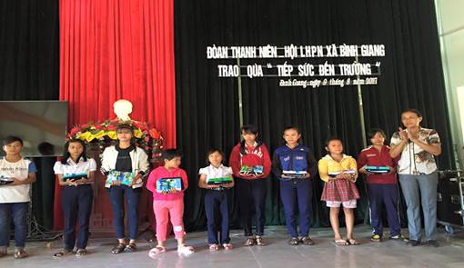 Hình ảnh: tại buổi lễ trao quà tiếp sức đến trường cho các cháu do Hội LHPN xã Bình Giang phối hợp với Đoàn Thanh niên xã tổ chức.