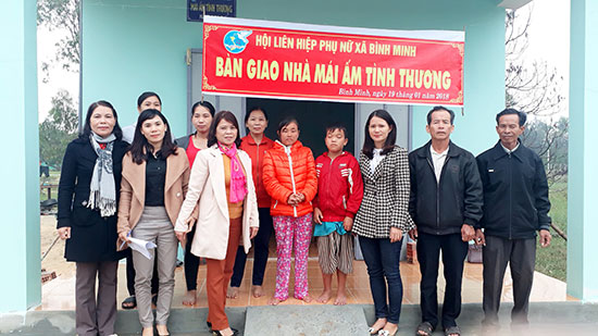 Trước thềm năm mới 2018, gia đình bà Trần Thị Phúc (70 tuổi) ở thôn Hà Bình, xã Bình Minh đón nhận niềm vui khi được sống trong căn nhà mới. Ngôi nhà được xây dựng từ sự chung tay đóng góp của Hội LHPN xã Bình Minh. Bà Trần Thị Phúc kể, bản than sống một mình, do không có nhà cửa ổn định nên phải ở với người em ruột. Cách đây hơn hai tháng, Hội LHPN xã đến khảo sát và quyết định hỗ trợ bà xây nhà tình thương với kinh phí 40 triệu đồng. Từ số tiền vay mượn khác, bà Phúc đã có căn nhà khang trang với kinh phí hơn 70 triệu đồng. Bà Phúc chia sẻ: “Bây giờ tôi đã có nơi để trở về. Tết năm này ấm cúng hơn mọi năm, tôi rất cảm động và biết ơn sự hỗ trợ này”. Dịp này, Hội LHPN xã Bình Minh cũng đã bàn giao thêm một ngôi nhà nữa cho chị Trần Thị Nga (thôn Tân An). Hoàn cảnh chị Nga rất đáng thương khi bị tâm thần lại nuôi đứa con trai khuyết tật năm nay 15 tuổi. Nhiều năm qua, hai mẹ con chị Nga phải sống trong căn nhà tạm bợ. Xuân này, từ sự hỗ trợ của Hội LHPN xã, mẹ con chị Nga đã có căn nhà tươm tất hơn.