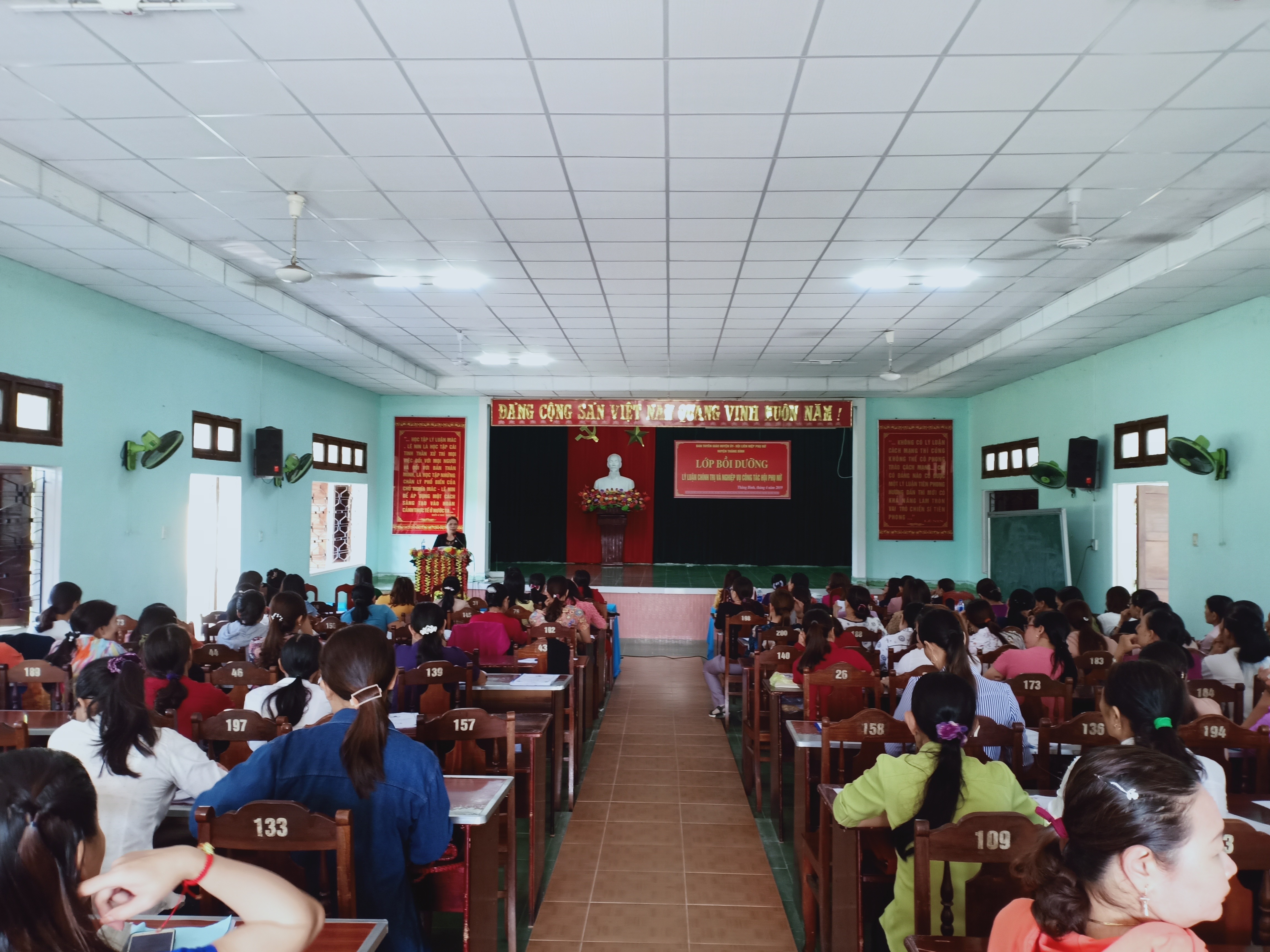 Lớp tập huấn bồi dưỡng lý luận chính trị và Nghiệp vụ công tác Hội được diễn ra trong 03 ngày (từ ngày 10/4/2019 – 12/4/2019), nhằm giúp cho đội ngũ cán bộ Hội cơ sở hiểu rõ một số Chủ trương Nghị quyết của Đảng, chính sách, pháp luật của Nhà nước có liên quan đến phụ nữ và bình đẳng giới; đồng thời nâng cao kiến thức và kỹ năng, phương pháp vận động phụ nữ trong tình hình mới./