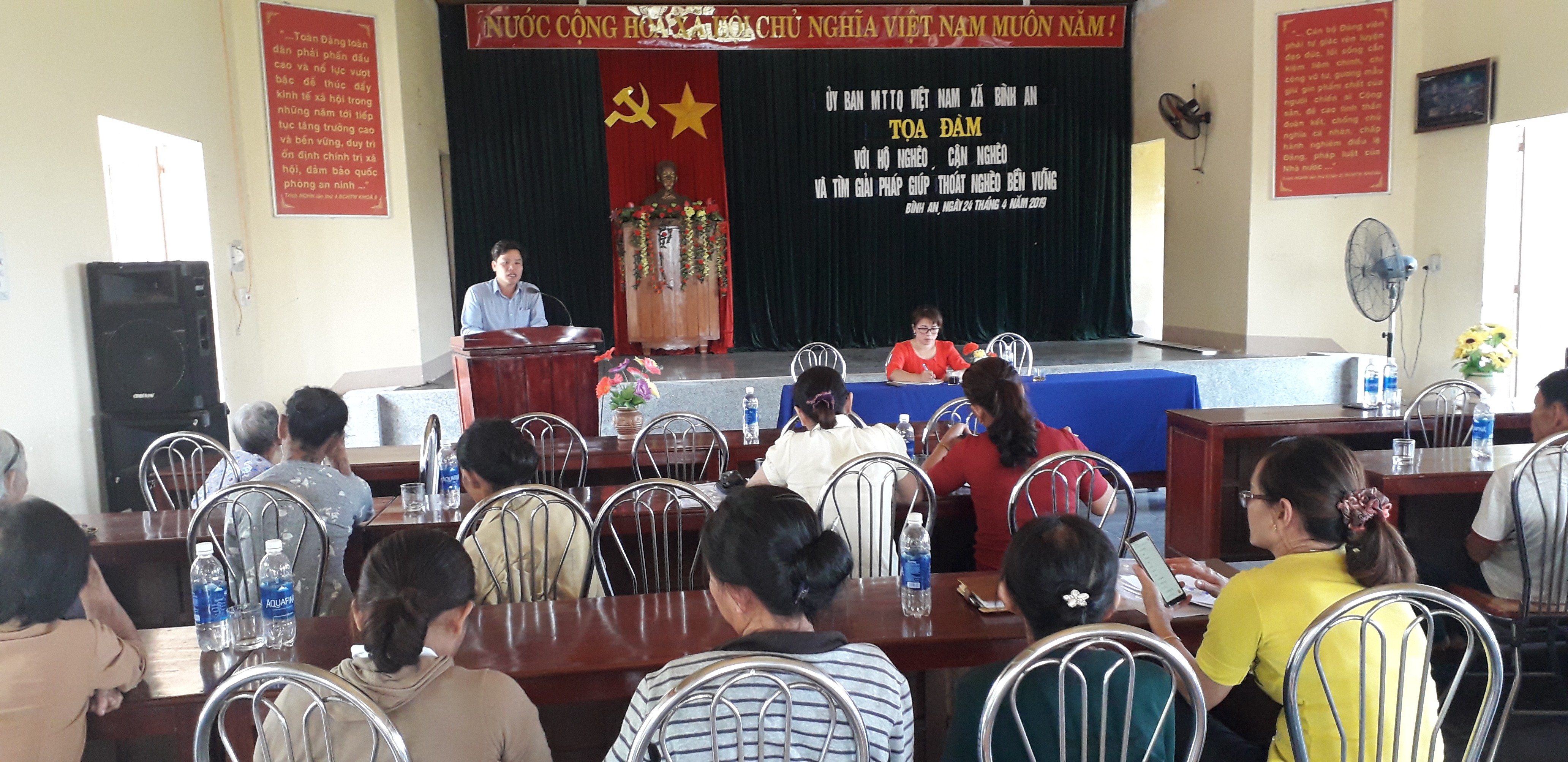 Tại buổi Tọa đàm, UBMTTQ Việt Nam xã đã đánh giá công tác tham gia giảm nghèo và thực trạng giải pháp đối với hộ nghèo thoát nghèo năm 2019. Cạnh đó, bà con cũng đã mạnh dạn chia sẻ khó khăn và thể hiện mong muốn vươn lên thoát nghèo, mong muốn được hỗ trợ sinh kế, phương tiện làm ăn, giới thiệu việc làm.