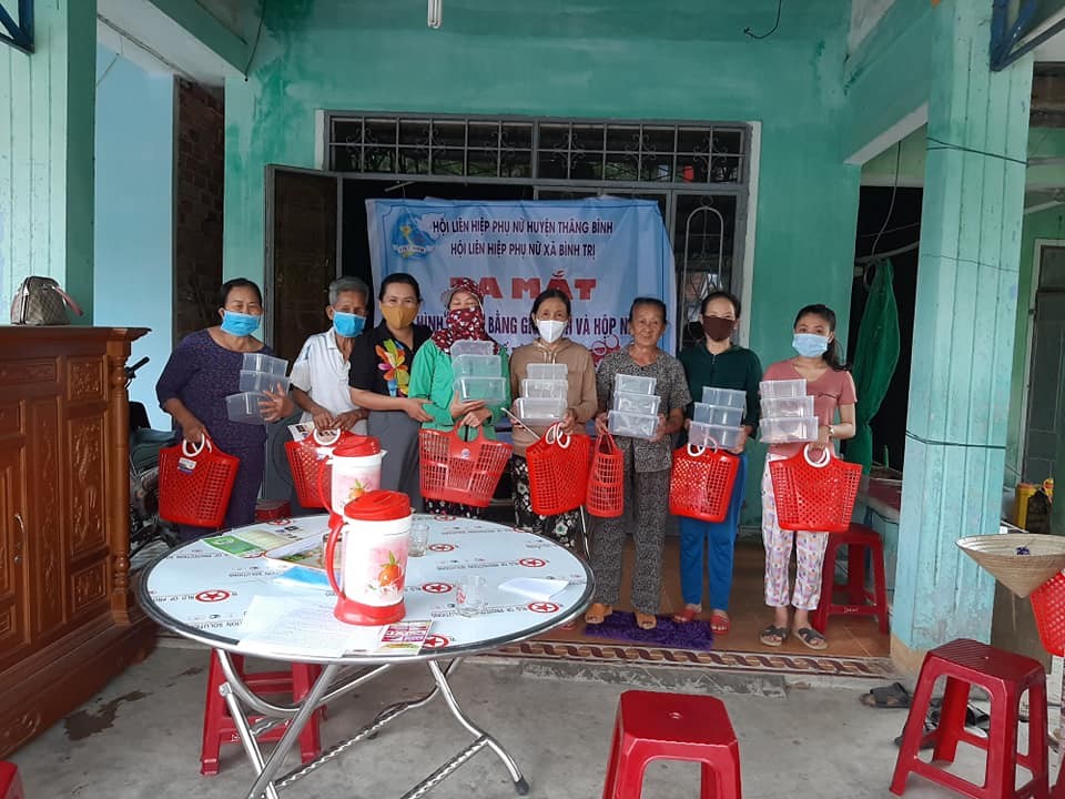 (Ảnh: Hội LHPN xã Bình Trị ra mắt mô hình và trao giỏ, hộp đựng thức ăn cho hội viên phụ nữ)