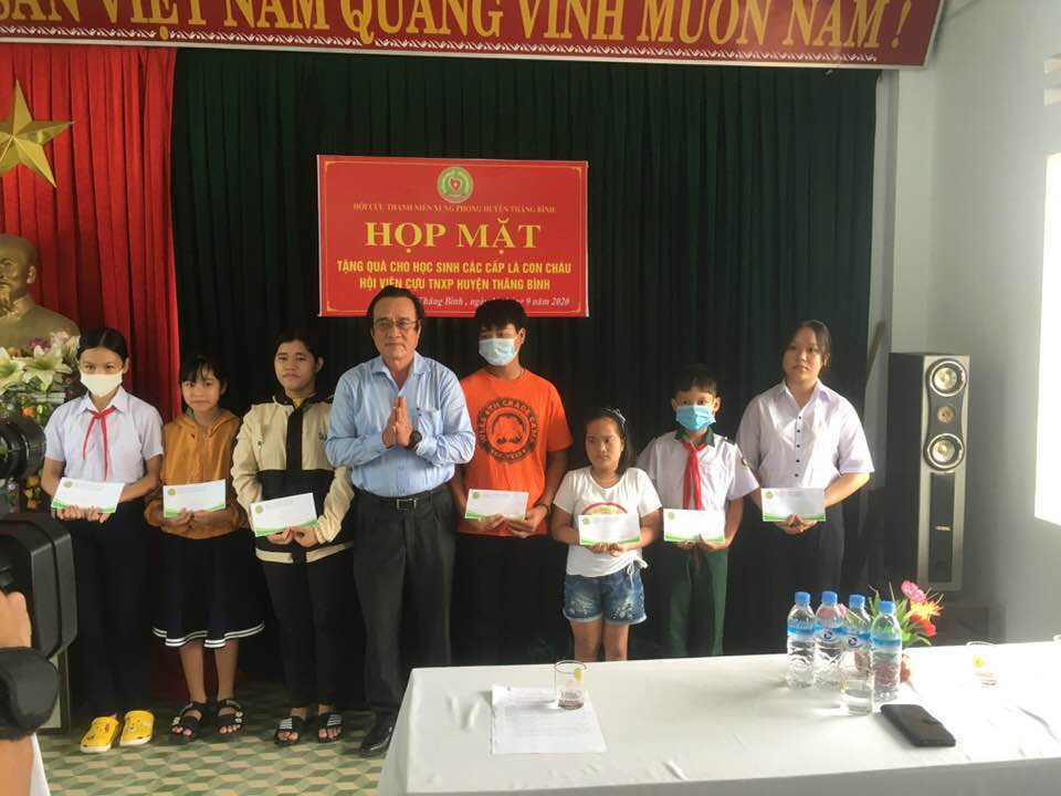 (Ảnh: Trao quà cho học sinh là con cháu hội viên Cựu TNXP huyện Thăng Bình)