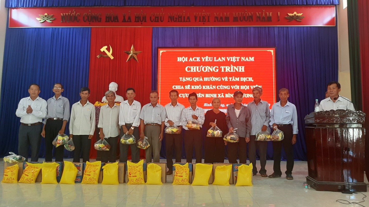 (Ảnh: Tặng quà cho Hội viên Hội Cựu Chiến binh xã gặp khó khăn trong tình hình dịch Covid-19)
