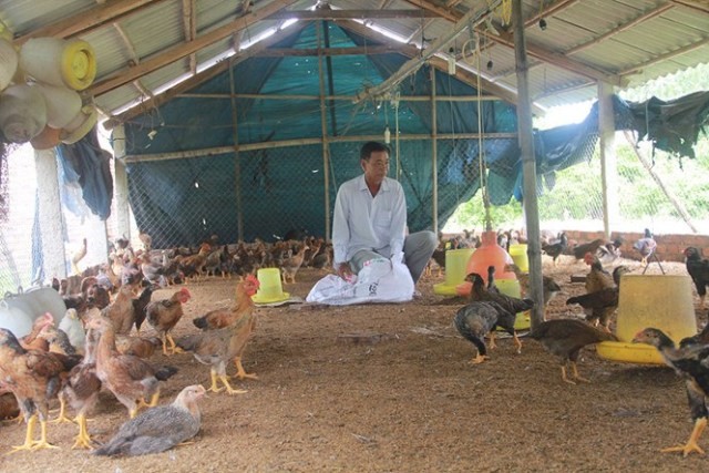 (Ảnh: Trang trại gà của nông dân Lê Duy Đức, xã Bình Nam tạo nguồn thực phẩm sạch, an toàn, góp phần giải quyết công ăn việc làm tại địa phương)