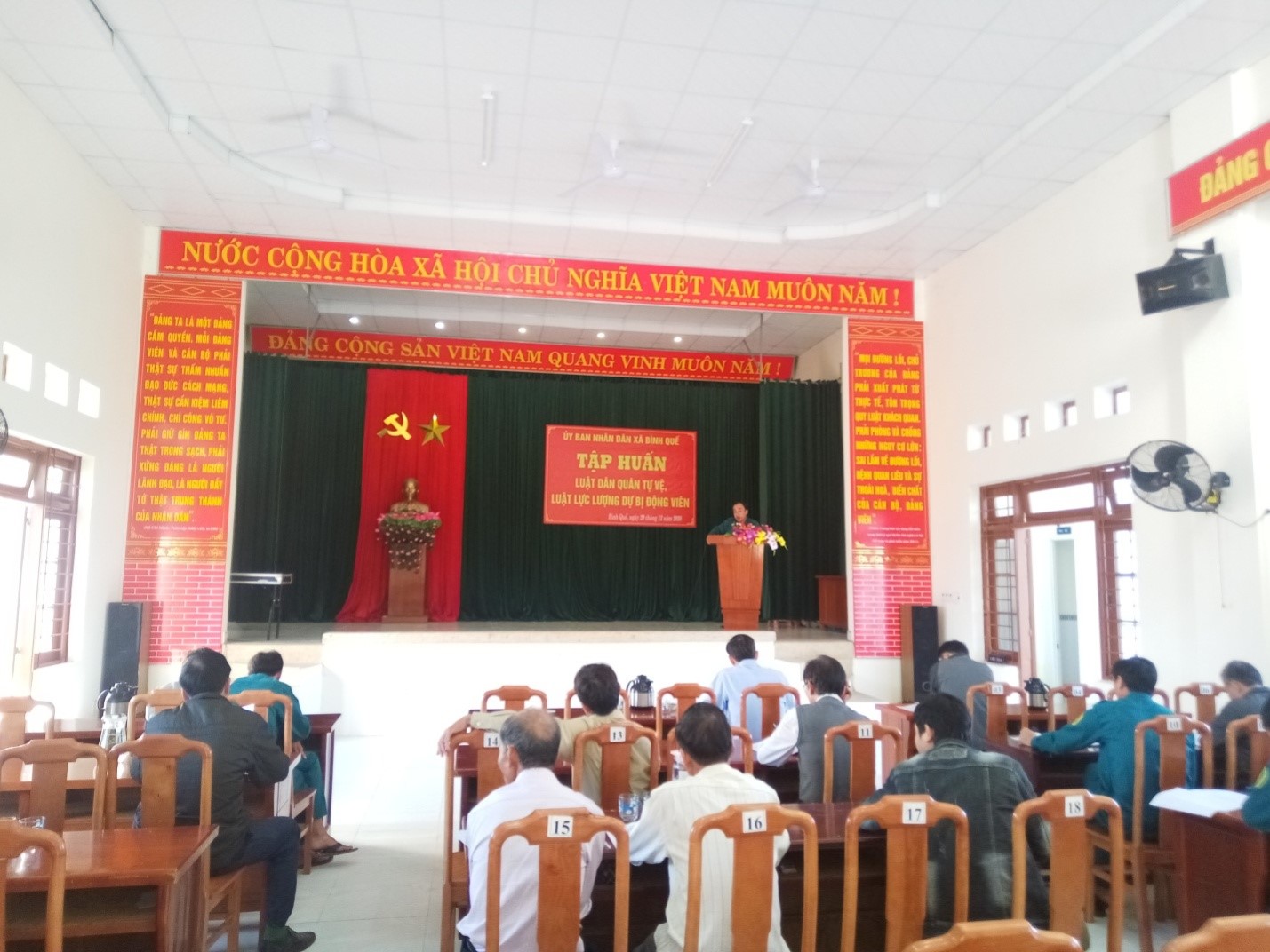 Luật lực lượng dự bị động viên ban hành ngày 26/11/2019 gồm III chương và 12 điều, Nghị Định số 79/2020 của chính phủ ban hành ngày 8/7/2020 qui định về chế độ chính sách trong xây dựng lực lượng dự bị động viên, trên cơ sở triển khai tập huấn về nội dung của các văn bản luật là nhằm nâng cao nhận thức của các ban ngành ,các tổ chức hội đoàn thể cũng như trong cán bộ từ xã đến thôn để tiếp tục làm tốt công tác tuyên truyền trong toàn thể cán bộ và nhân dân về các văn bản luật cũng như Nghị định của chính phủ về DQTV, và lực lượng DBĐV./.