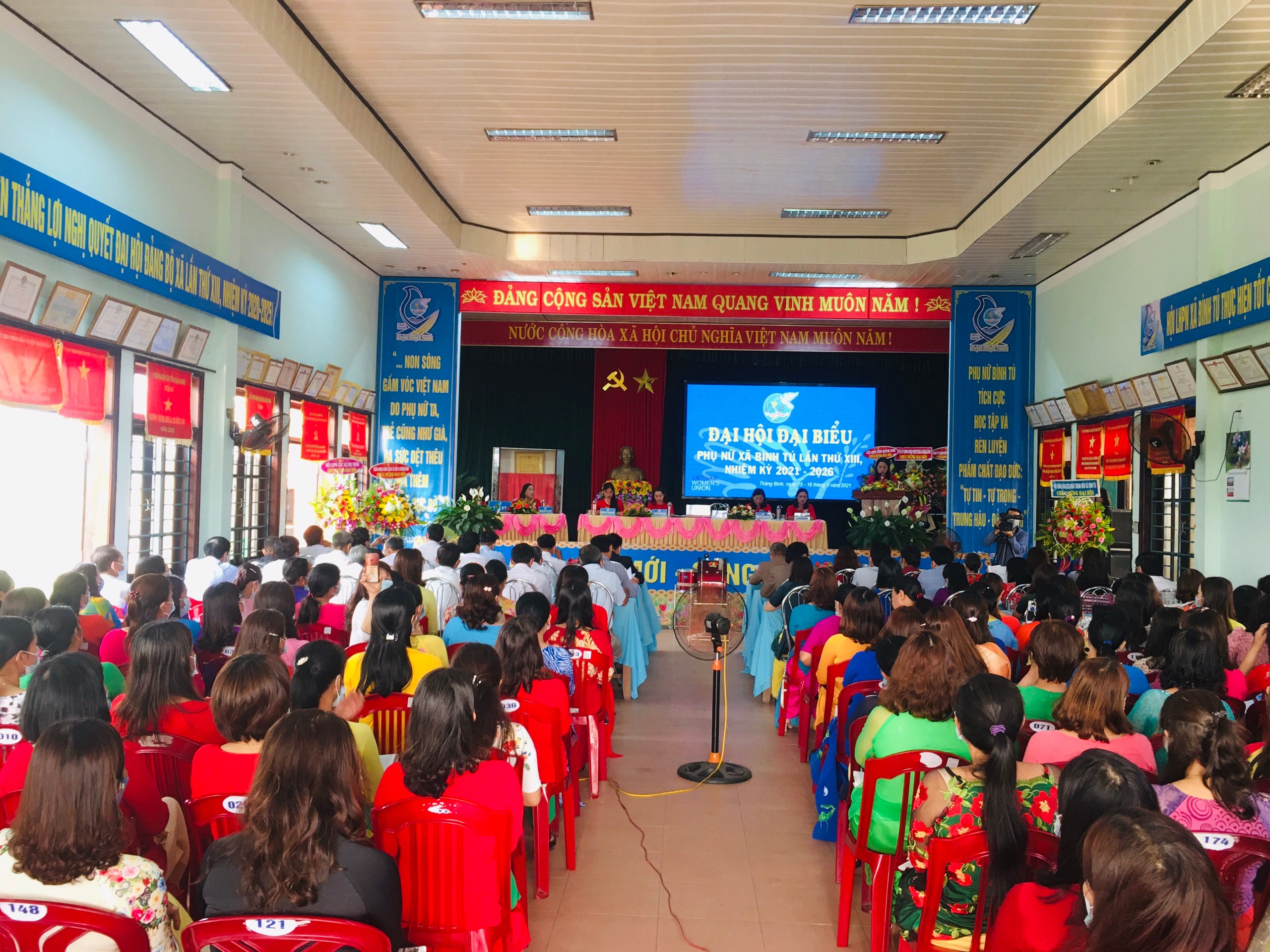 Đây là đơn vị Đại hội điểm cấp cơ sở của Hội LHPN huyện Thăng Bình. Đại hội đề ra phương hướng, nhiệm vụ nhiệm kỳ mới với mục tiêu phấn đấu hằng năm Hội Phụ nữ xã giúp ít nhất 1- 2 hộ nghèo, cận nghèo có hội viên phụ nữ làm chủ hộ thoát nghèo, thoát cận nghèo; hỗ trợ ít nhất 02 hộ gia đình đạt tiêu chí gia đình 5 không, 3 sạch bền vững, đăng ký và thực hiện 01 công trình, phần việc góp phần xây dựng nông thôn mới mỗi năm. Phấn đấu đến năm 2026 có 80% trở lên phụ nữ và trẻ em gái tại xã là nạn nhân của bạo lực gia đình được trang bị nâng cao nhận thức và được Hội phát hiện và giúp đỡ, bảo vệ khi có vụ việc xảy ra….